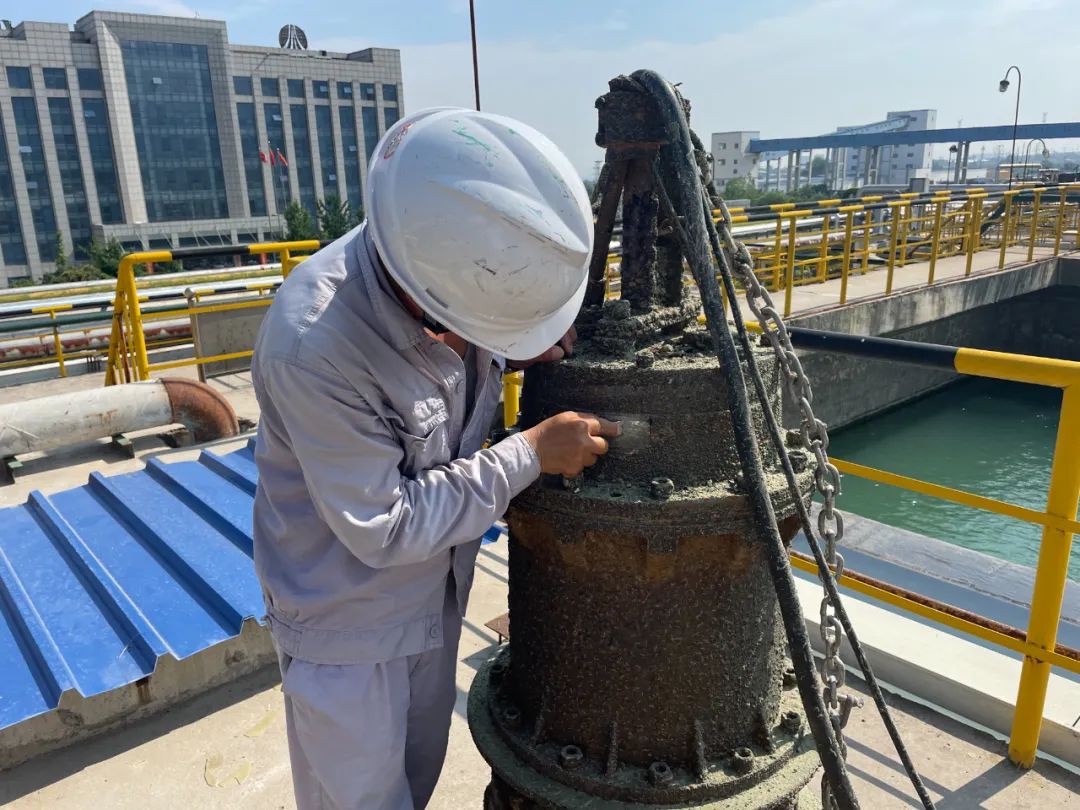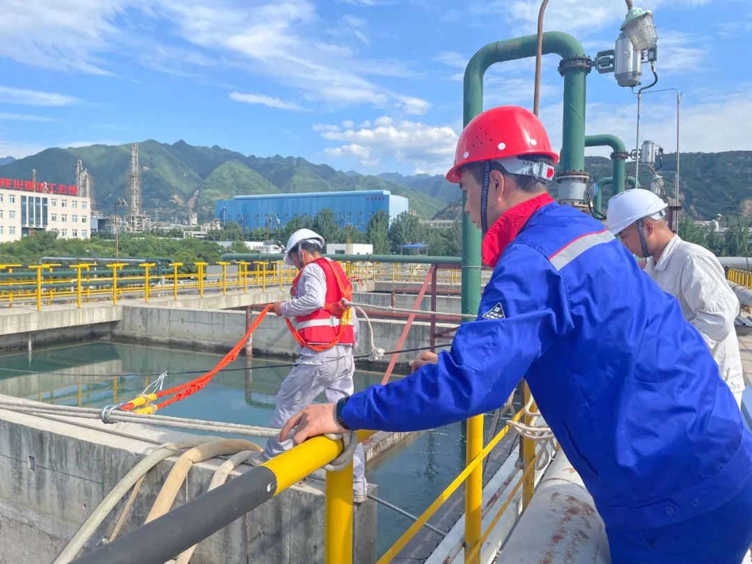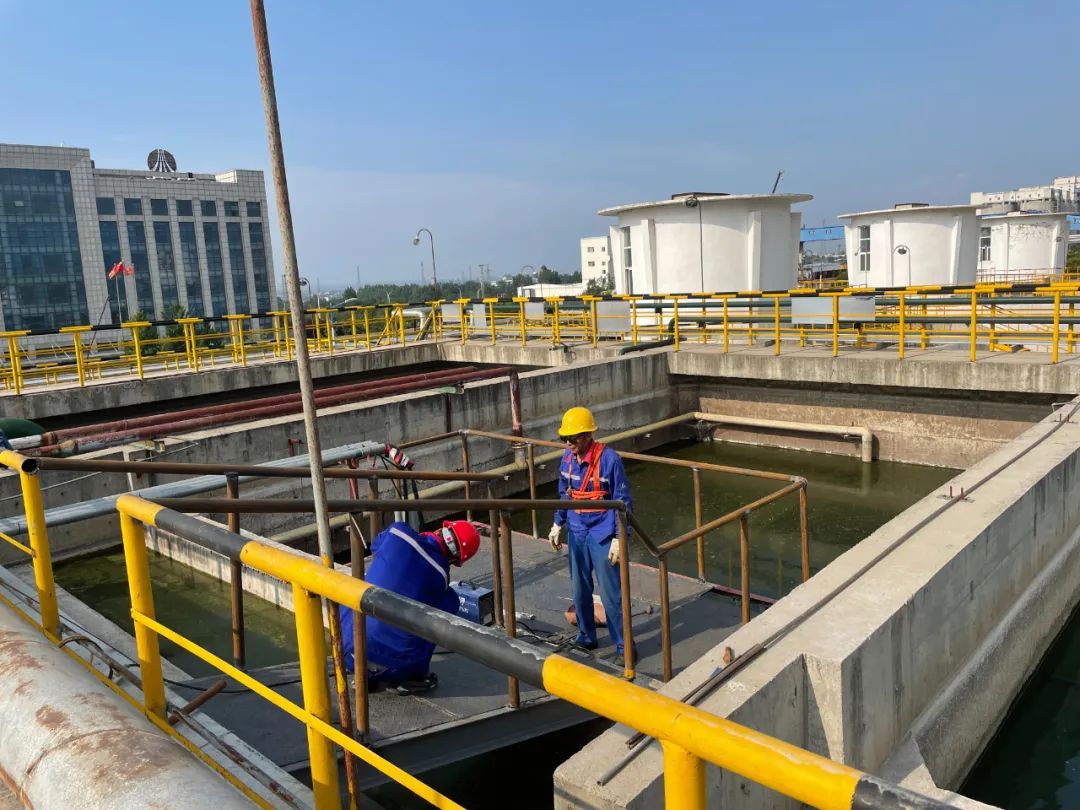6月骄阳似火,42度的高温,灼烤着人的身心,滤池潜水泵A泵坏,影响滤池不能正常进行过滤,出水指标受影响,在公司领导的远程指挥下,现场进行潜水泵的维修及管道的改造工作,设备技术员弯爱良、工艺技术员赵光辉冲在一线,不畏深水的险峻,圆满完成潜水泵的更换任务,在运维人员的共同努力下,顺利的完成水泵的更换、管道的技改以及安全平台的制作,保证了工艺的稳定,系统正常运行,得到陕化领导的称赞。